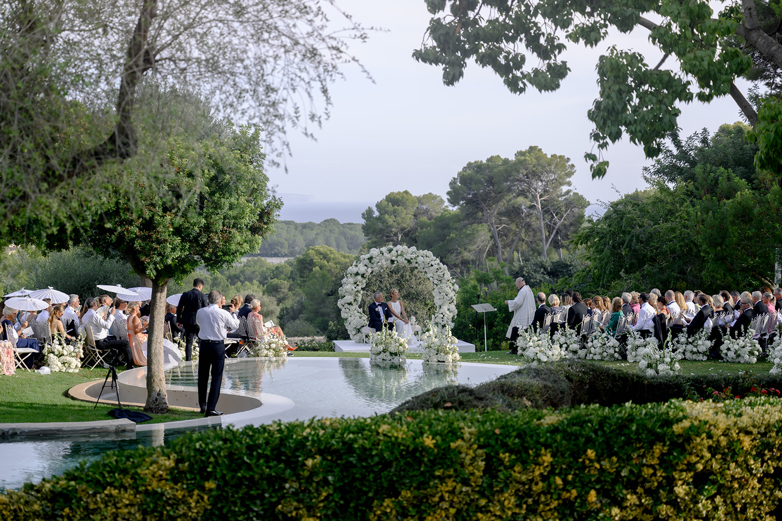 For mid-October, the wedding day was one of the warmest in a long time, with temperatures soaring over 35°C and a light sea breeze—perfect for an outdoor celebration.
