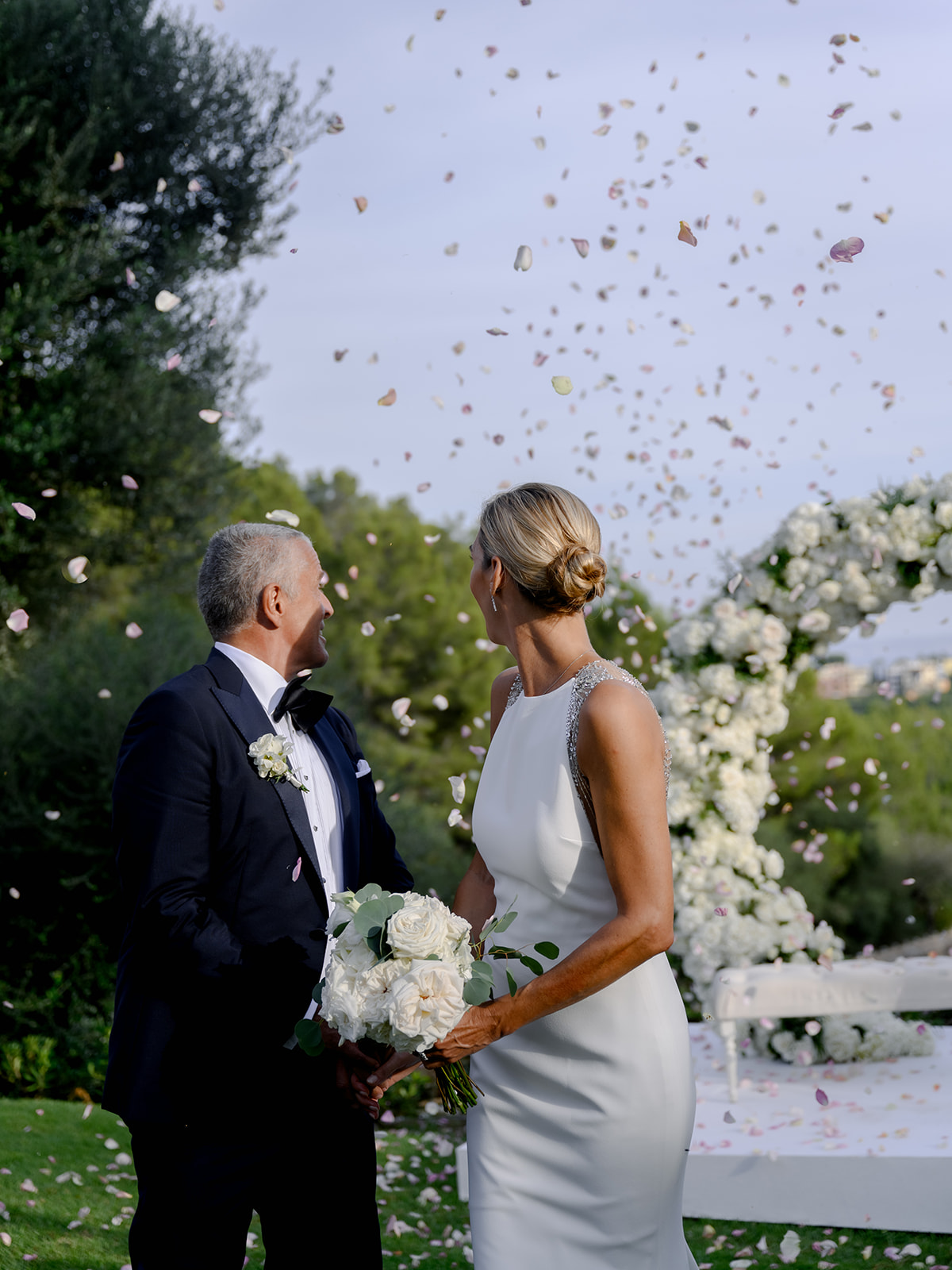 The flower cannon during the couple’s exit was also unforgettable. Over 10,000 petals were shot into the air, creating a truly magical rain of petals.