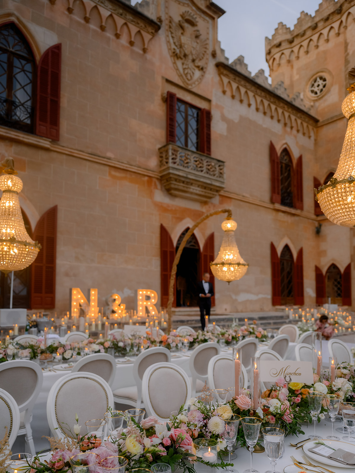 Natali & Richard’s wedding in Mallorca brought our season to a beautiful close in October. The neo-Gothic mansion with its castle-like charm created the ideal setting for their elegant celebration with over 130 guests.